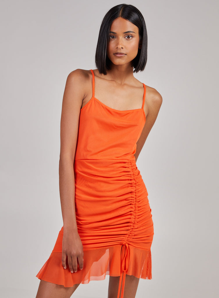 Gathered Mesh Mini Corset Dress