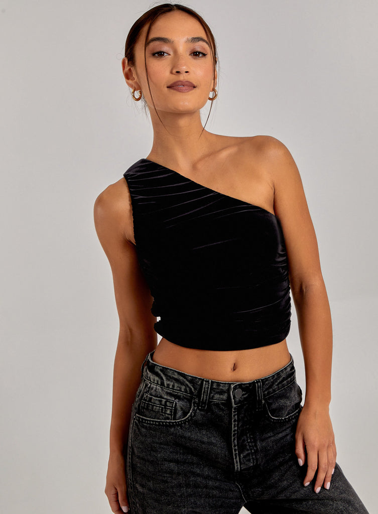 One Shoulder Ruched Slinky Top