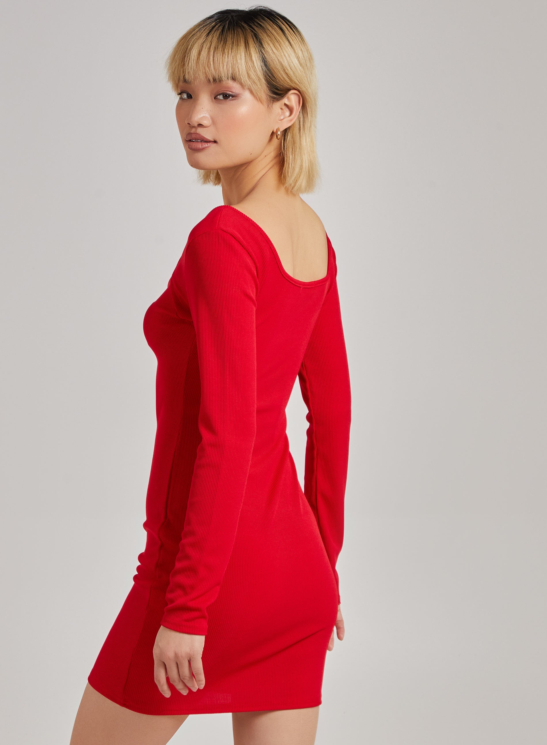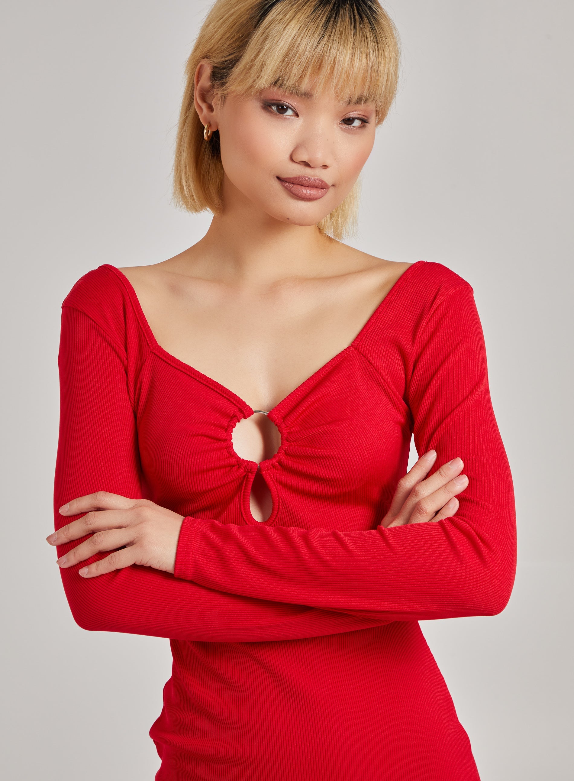 Rib Cut Out Long Sleeve Rib Dress